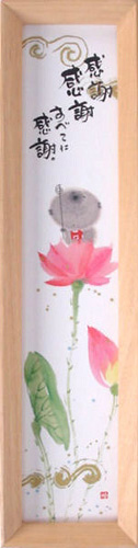 和紙の化粧箱入りのミニ掛け軸です。 かわいらしいサイズなのでどこにでも飾れます。他にはない、ちょっと変わったギフトにもいかがでしょうか。