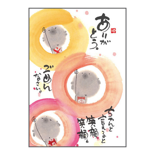 愛らしいお地蔵さんをはじめ、猫・天使・ふくろう・お花などのモチーフと、温かい書のメッセージ。