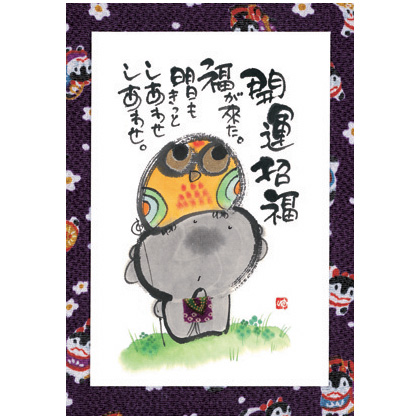 愛らしいお地蔵さんをはじめ、猫・天使・ふくろう・お花などのモチーフと、温かい書のメッセージ。